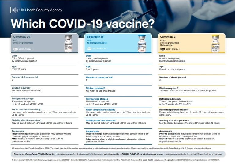 16th July: Departmental minute on the COVID-19 autumn 2025 vaccination programme AND 26/27 advice is here! Vaccination will be offered in England in autumn 2025 to adults aged 75 years and over, residents in a care home for older adults, individuals aged 6 months and over who are immunosuppressed, as defined in tables 3 and 4 of the COVID-19 Green Book chapter. The same groups look likely for autumn 2026 and spring 2027 too. The vaccines that will be supplied for the autumn 2025 programme are the Pfizer-BioNTech mRNA (Comirnaty) vaccines, dose-dependent on age.