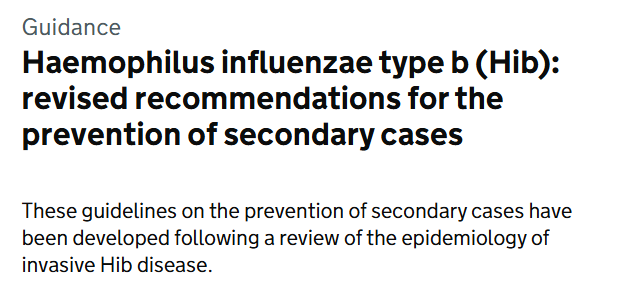 September 2024: Updated guidance published on management of Hib cases. Haemophilus influenzae type b (Hib): revised recommendations for the prevention of secondary cases.