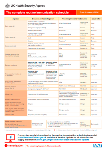 UK National Immunisation Schedule