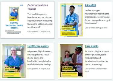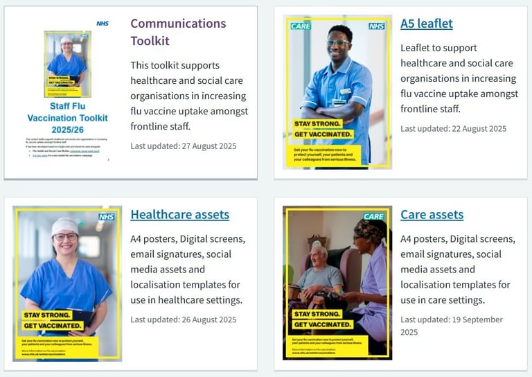 NHS England has launched the staff flu vaccination campaign resources for 2025/26. They include a range of visuals, messaging, scripts, Q&As, a leaflet and top tips. A call to action letter was cascaded to system leaders to support improving staff flu vaccine uptake as a national priority. Together with UKHSA, a winter vaccination communications toolkit for stakeholders has also been published.