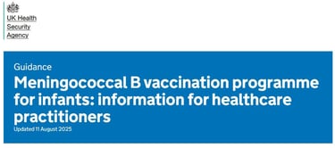 6th June 2025: MenACWY programme: information for healthcare professionals updated along with a fresh new set of slides (also linked above). The MenB equivalent has also been updated today to align with the changes to the childhood immunisation schedule from 1 July 2025, moving second MenB dose to 12 weeks from 16 weeks.