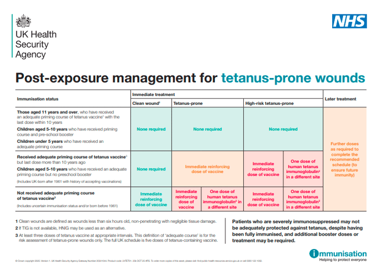 MARCH 2024 Updated guidance for management of tetanus prone wounds